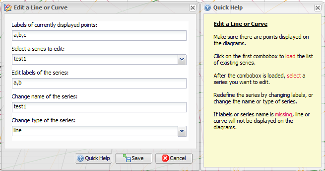 Estale sobre "Diagramas - >Editar uma Linha ou Curva" para abrir edita a caixa de diálogo da "Editar uma Linha ou Curva".
